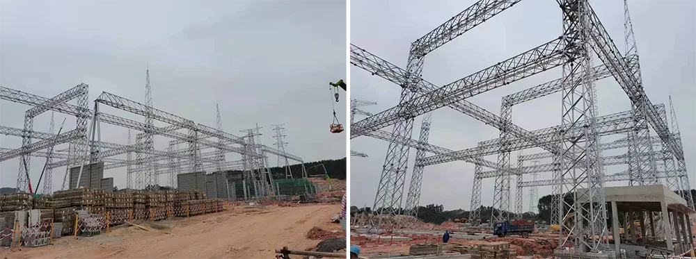 มีความแตกต่างอย่างสิ้นเชิงจากเสาส่งกำลังซึ่งใช้เพื่อรองรับสายไฟเหนือศีรษะเท่านั้น เสาส่งกำลังทำหน้าที่เป็นตัวรองรับในการส่งไฟฟ้าแรงสูงจากจุด A ไปยังจุด B เท่านั้น โดยไม่มีการเปลี่ยนแปลงแรงดันไฟฟ้าหรือการควบคุมกำลัง ในทางตรงกันข้าม โครงสร้างเหล็กของสถานีย่อยเป็นสิ่งอำนวยความสะดวกที่สมบูรณ์ซึ่งรวมการแปลงแรงดันไฟฟ้า การควบคุมพลังงาน และฟังก์ชันการจ่ายพลังงาน โดยมีส่วนประกอบหลัก เช่น หม้อแปลงหลัก อุปกรณ์สวิตชิ่ง และอุปกรณ์ป้องกัน พวกเขาเป็นศูนย์ประมวลผลและจัดส่งที่ขาดไม่ได้ในกระบวนการส่งกำลัง ทั้งสองทำงานร่วมกันเพื่อสร้างเครือข่ายการส่งพลังงานที่สมบูรณ์